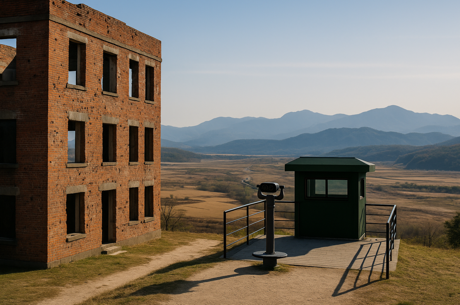 노동당사를 둘러본 뒤에는 차량으로 10여 분 거리의 '멸공OP'로 향해보길 권합니다. OP란 Observation Post, 즉 관측소를 의미하며, 멸공OP는 민간인이 방문할 수 있는 몇 안 되는 비무장지대 인근의 관측 포인트 중 하나입니다. 이곳에서는 망원경을 통해 실제 북측의 생활 모습, 군 시설, 그리고 멀리 보이는 북한의 마을까지 관측할 수 있어 많은 이들에게 강한 인상을 남깁니다. 멸공OP에서는 군인의 안내와 함께 진행되는 설명이 있어, 안보 교육과 동시에 평화에 대한 고민을 자연스럽게 유도합니다. 군사적 설명만 있는 것이 아니라, 이곳에서 겪었던 인간적인 이야기들, 이산가족의 사연, 군인들의 삶까지 다채롭게 들려주기 때문에 단순히 '안보'만을 강조하는 공간이 아닌, 인간 중심의 시선으로 풀어낸 DMZ 체험이 가능합니다. 무엇보다도 멸공OP의 풍경은 특유의 고요함 속에서 위화감을 자아냅니다. 눈앞에 펼쳐지는 북한 땅은 마치 평화로운 시골 마을처럼 보이지만, 그 경계에는 긴장감이 흐르고 있습니다. 이 이질적인 풍경은 여행자에게 '평화란 무엇인가'라는 질문을 다시 던지며, 단순한 여행을 넘어선 내면적 사색의 시간을 제공합니다. 이곳을 찾는 30~50대 방문객들은, 단순히 사진을 찍기 위한 장소가 아닌, 역사와 현실을 체감하는 공간으로 기억합니다. DMZ가 뉴스 속 이야기가 아닌, 직접 눈앞에 펼쳐지는 현실이라는 것을 느끼는 순간, 이 여행은 평생 기억에 남는 의미 있는 발자취가 됩니다.